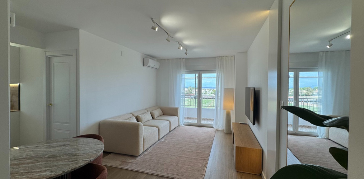 Located just 500 metres from the Mediterranean Sea, this fully renovated corner penthouse on the 6th floor offers privacy, natural light and panoramic views in one of the most prestigious areas of Punta Prima.