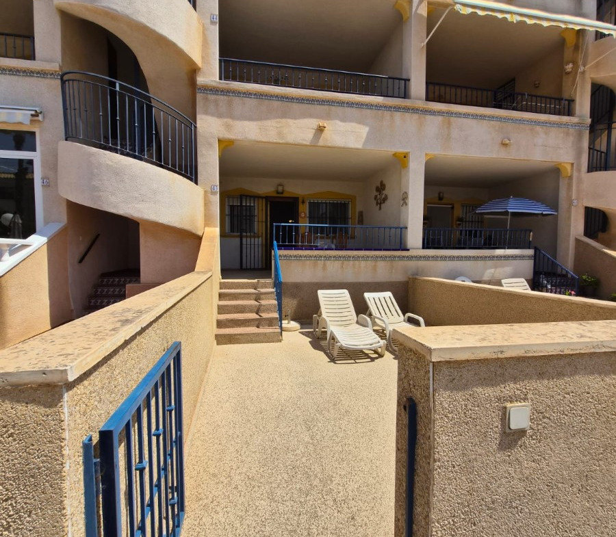 Located in the popular La Ciñuelica area, this south-facing ground floor apartment offers comfortable living within a well-maintained, enclosed community.