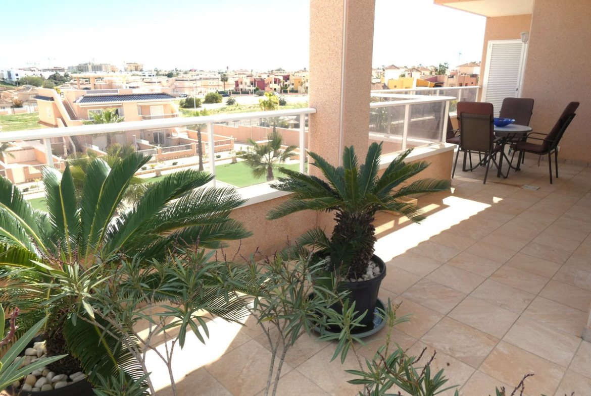 Welcome to a modern, airy and bright apartment in Punta Prima. With an area of just over 80 m2, there are three spacious bedrooms and two stylish bathrooms. A large terrace runs around two of the apartment's sides with access from all connecting rooms.