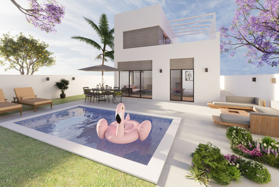 The plot is 306 m², with an optional private swimming pool, part of the residential complex in Lo Marabú, in an area with all possible services and beautiful views of the Laguna de la Mata.