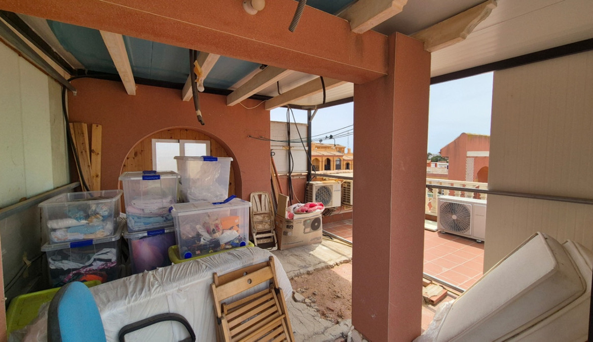 Charming 2-Bedroom Villa in AguasNuevas, Sector 25 – TorreviejaLocated in the sought-after Aguas Nuevas, Sector 25, this delightful southeast-facing independent villa offers the perfect blend of comfort, privacy, and Mediterranean lifestyle. Set within a secure gated community with a communal pool, the property features 2 spacious bedrooms and 2 modern bathrooms, one of which is en-suite.Enjoy a bright and airy layout with an open planliving area and a well-equipped kitchen. The villa also includes an open basement-ideal for storage, a gym, or converting into extra living space-plus a private solarium offering panoramic views, perfect for sunbathing or relaxing.Outside, the villa boasts a generous outdoor area, ideal for entertaining, gardening,or simply enjoying the sunnyCosta Blanca climate.This property is perfect for year-round living or as a holiday retreat with excellent rental potential.