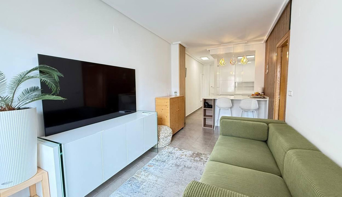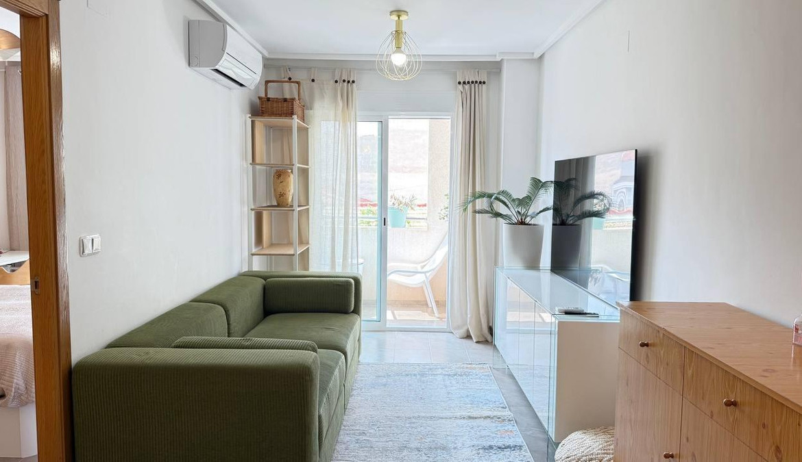 This apartment is a real gem! Situated in the port area of Torrevieja, just a few minutes walk from the beach. It consists of a double bedroom and a full bathroom. This property has been recently renovated with modern finishes that provide plenty of light and elegance. The kitchen is equipped with everything you need to prepare your favourite meals. The south-east orientation provides natural sunlight for most of the day, making it very cosy. There is also access for disabled guests (PRM). The building also has a lift, so you will not have any problems if you need to carry heavy suitcases or large items.