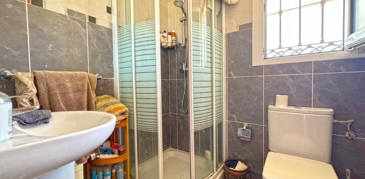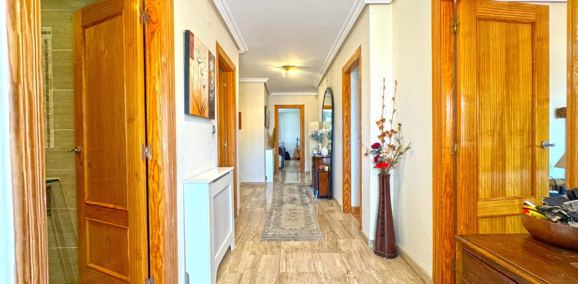 The second floor includes 2 bedrooms, each with an en-suite bathroom, providing additional private space. From here you reach the big terrace that goes around the corner of the house overlooking the swimming pool and also your way up to the solarium for beautiful views.