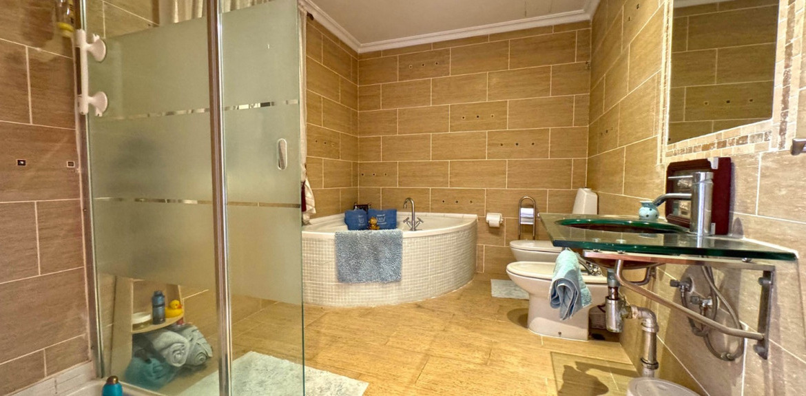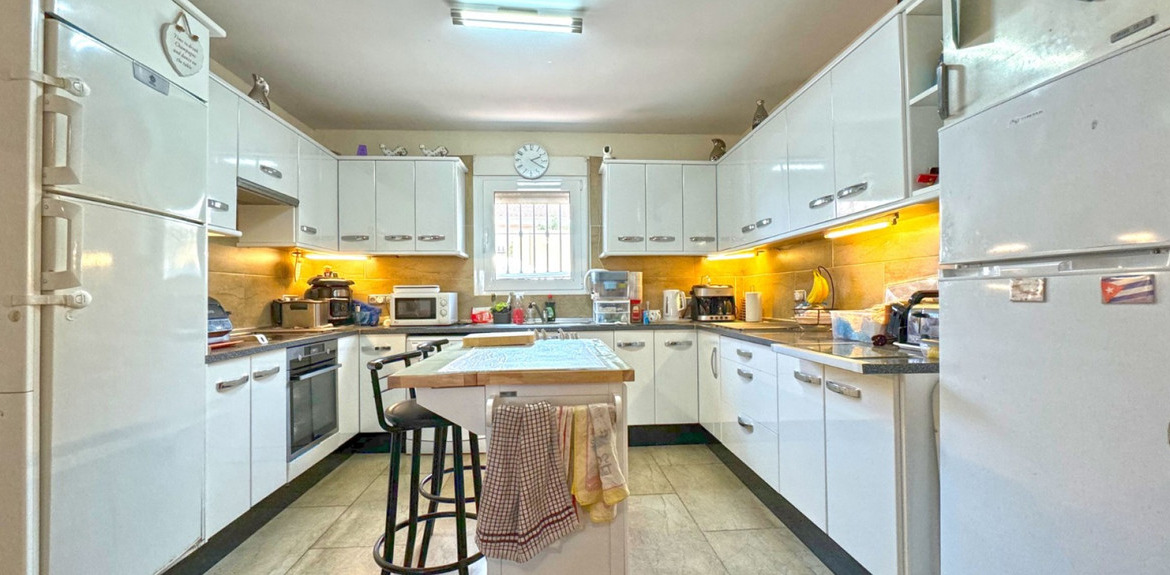This 340m² house is set on a generous 1000m² plot, providing ample space for comfortable living. The property boasts a beautiful terrace and a solarium, perfect for enjoying stunning panoramic views and additional outdoor living space. Equipped with air conditioning and heating, this home ensures year-round comfort.