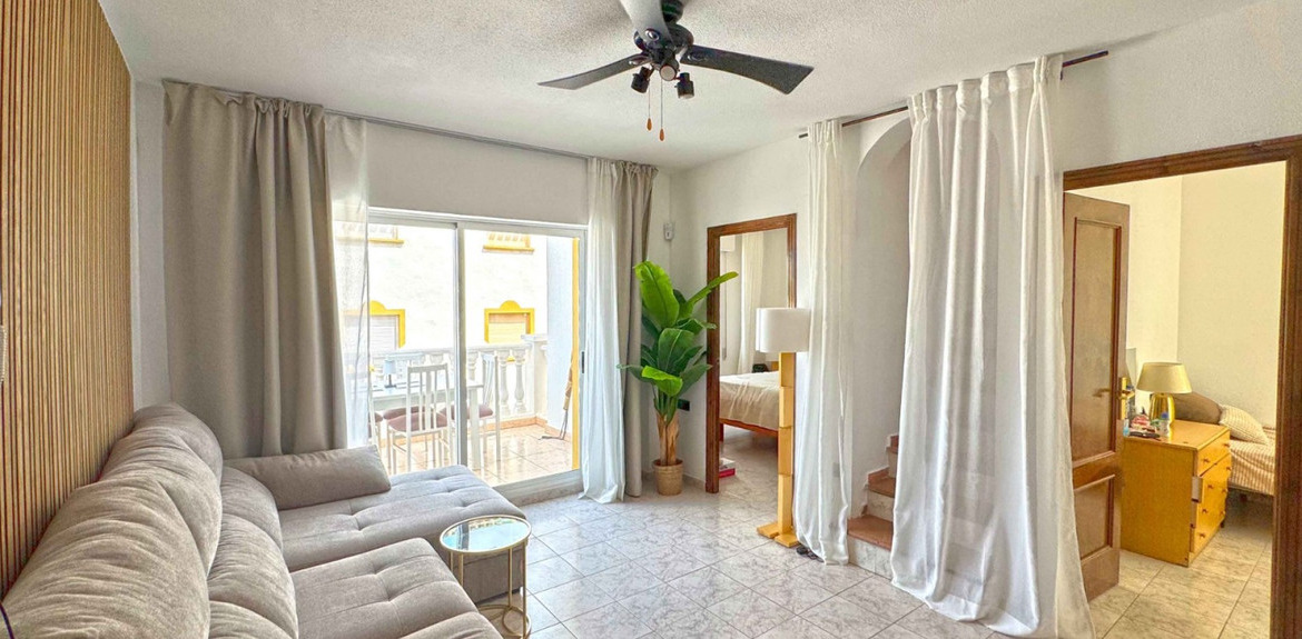 We are proud to present this rare opportunity to own a beautifully upgraded duplex in the iconic Molino Blanco urbanisation, just 300 meters from the golden sands of La Mata beach.