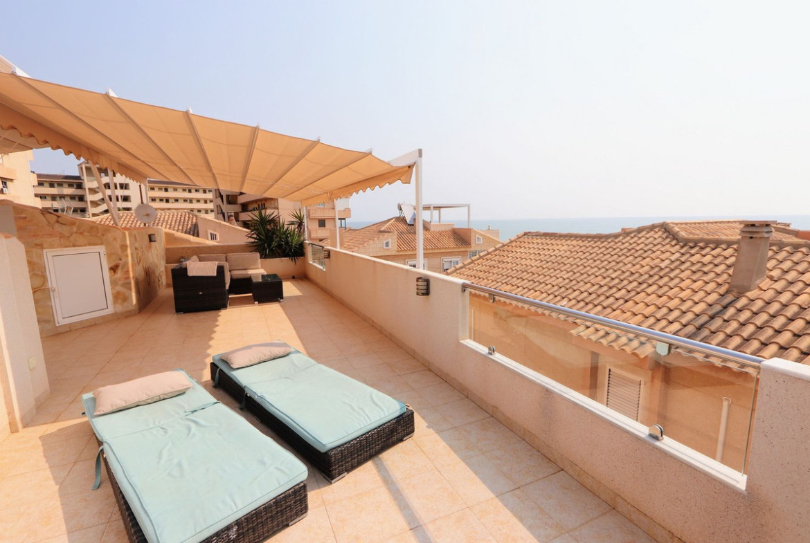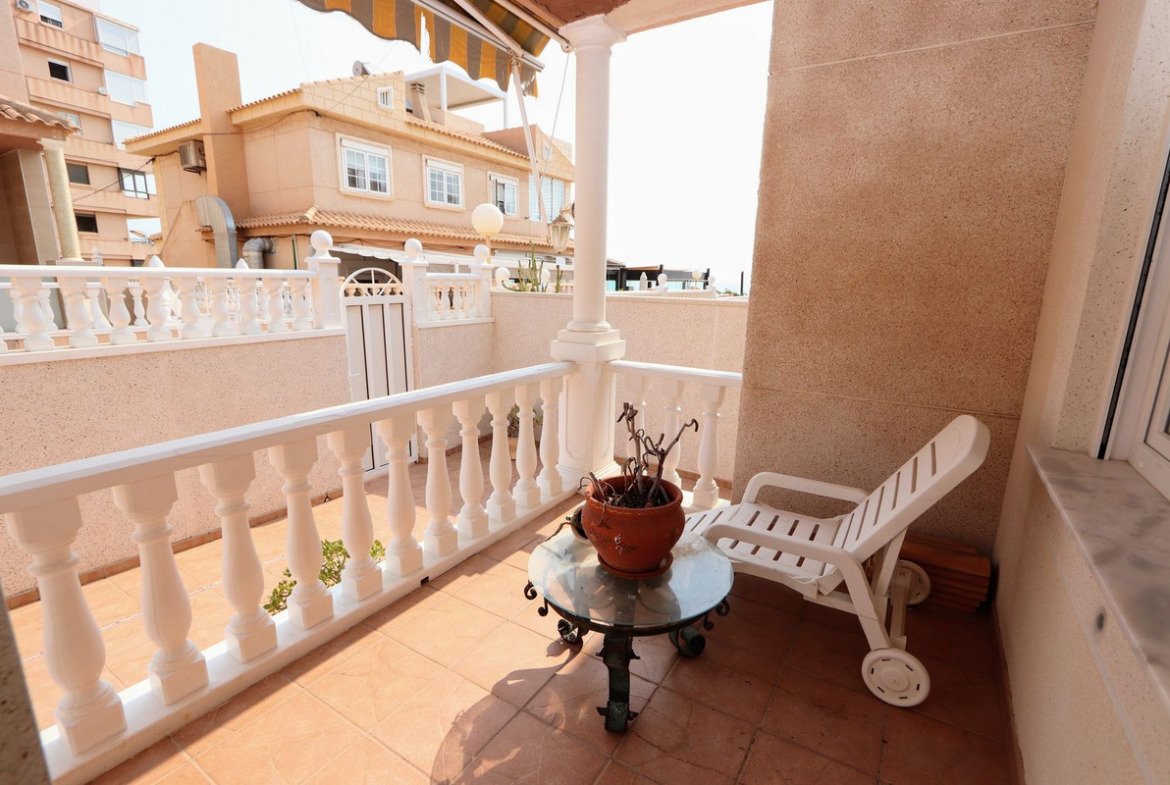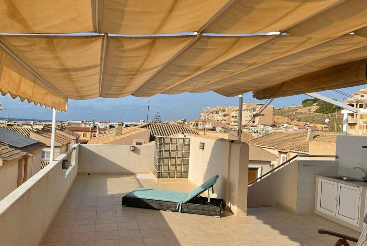 We are happy to present to you this Lovely Semi Detached Villa with Sea Views and direct access to the beach Playa de Roca in Torrevieja. The property consists of 3 bedrooms, 2 bathrooms, living/dining area and a fully fitted kitchen. The property benefits from private terrace, air conditioning and a roof solarium with sea views, outside kitchen and shower.