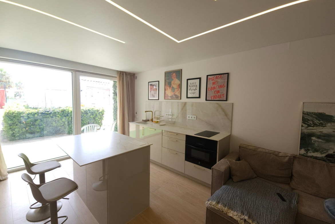 We present a unique opportunity to acquire a magnificent apartment in the prestigious area of La Veleta, Torrevieja. This real estate business is located just 200 meters from the sea and has been completely renovated with high-quality materials. With a constructed area of 165 m² and a usable area of 105 m², it features two spacious double bedrooms and two modern bathrooms equipped for your comfort. The property stands out for being entirely exterior, which guarantees brightness throughout the day thanks to its south-facing orientation.Additionally, it is fully equipped for permanent residence; it includes elegant furniture and appliances as an integral part of the agreement. Enjoy the advanced electrical system and efficient facilities such as premium air conditioning that ensure comfort in any climate.One of its main attractions is the innovative Smart Home System, allowing you to control lighting, ambient temperature, and devices from your mobile or smart device.In each bathroom, you will find hidden electric towel rails with remote control, while visual projections are possible thanks to the projector installed in each room. Adding further value to the common space are the comprehensive Bluetooth audio systems present in both the kitchen and living room, whose versatile environment will allow you to enjoy unforgettable moments with friends or family.The urbanization offers exclusive access to a well-equipped pool and a bar, ideal for relaxing after long sunny days enjoying this wonderful coastal environment without the need for additional investments: ready to move in!