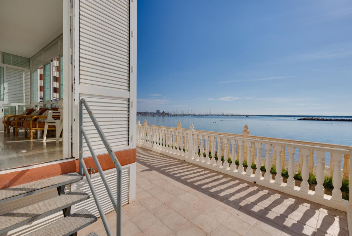 38 M² OF PRIVATE TERRACE WITH ENDLESS SEA VIEWSTHE LUXURY OF LIVING ON THE FRONTLINE IN TORREVIEJAWake up every day to the sound of the waves and the scent of the Mediterranean. This spectacular ground-floor apartment, ready to move into, offers you a lifestyle where the sea is not seen from afar its lived from your own 38 m² private terrace.Located in the prestigious Acequión area, just 120 meters from Los Náufragos Beach (Blue Flag), this home combines elegance, space, and an unbeatable location in the heart of the Costa Blanca.Main featuresTotal area 108 m² + 38 m² private terrace with direct sea views4 spacious bedrooms2 full bathroomsModern and functional open-plan kitchenSoutheast orientation natural light all day longClosed double garage includedProperty tax (IBI) €315/year Garage tax €51.61/year Community fees €610/yearBuilding from 1981 in excellent conditionEnjoy the comfort of having everything within reach supermarkets, restaurants, pharmacies, bars, shopping centers, and Alicante Airport just 40 minutes away.Torrevieja will captivate you with its Mediterranean climate over 300 days of sunshine a year its promenade, the Natural Park of Las Lagunas de La Mata, and its Blue Flag beaches.This apartment is not just a property its an invitation to live by the sea, with the luxury of a terrace that seems to touch the horizon.