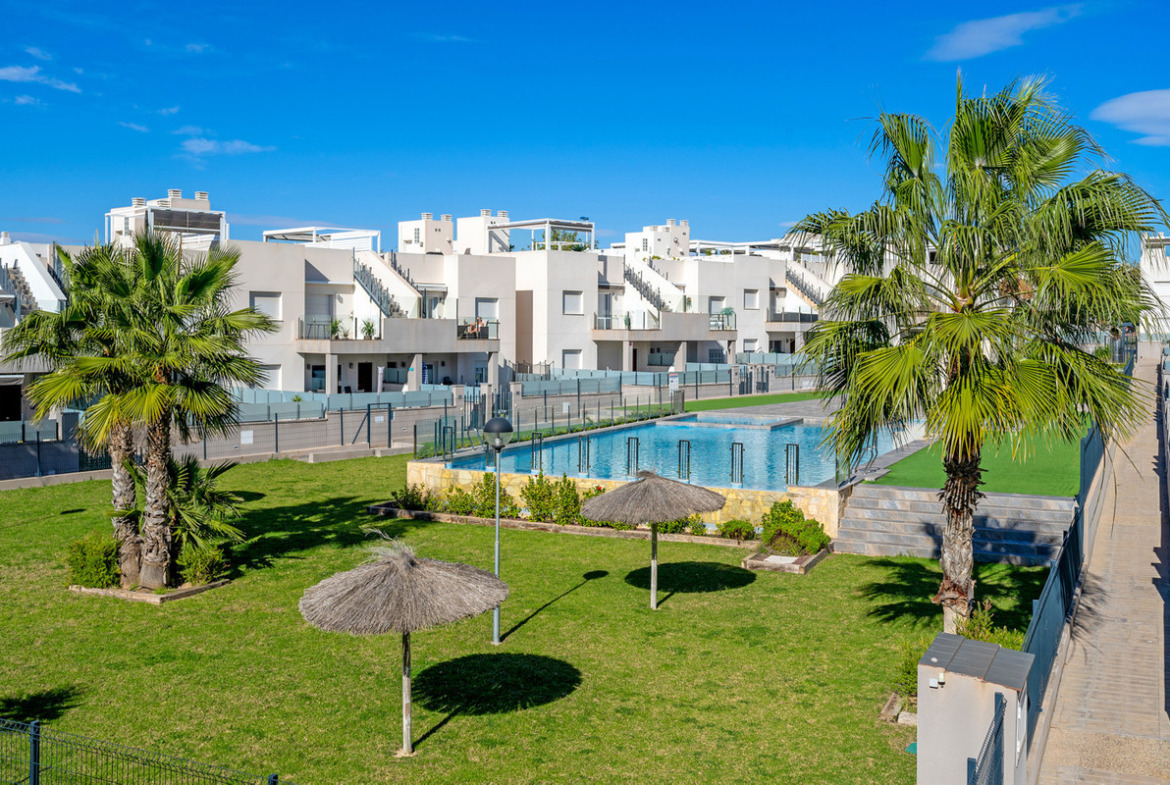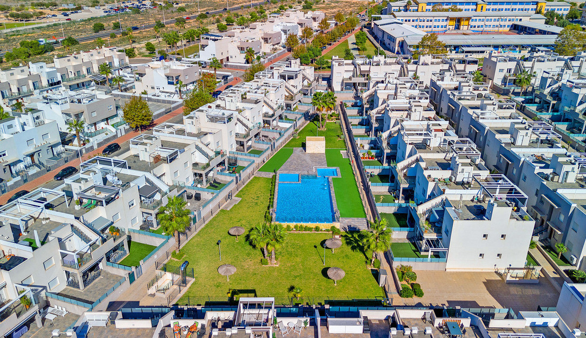 This elegant upper bungalow from 2019 offers a modern and comfortable base in one of Torrevieja's most sought-after areas, namely Aguas Nuevas. The home has 78 m² with two good bedrooms and two stylish bathrooms, one of which is ensuite. There are large built-in wardrobes in both bedrooms, so there is plenty of space for storage.
