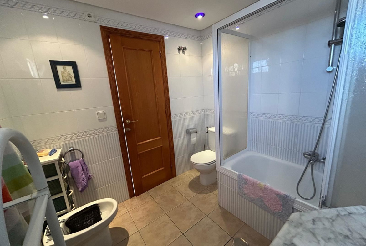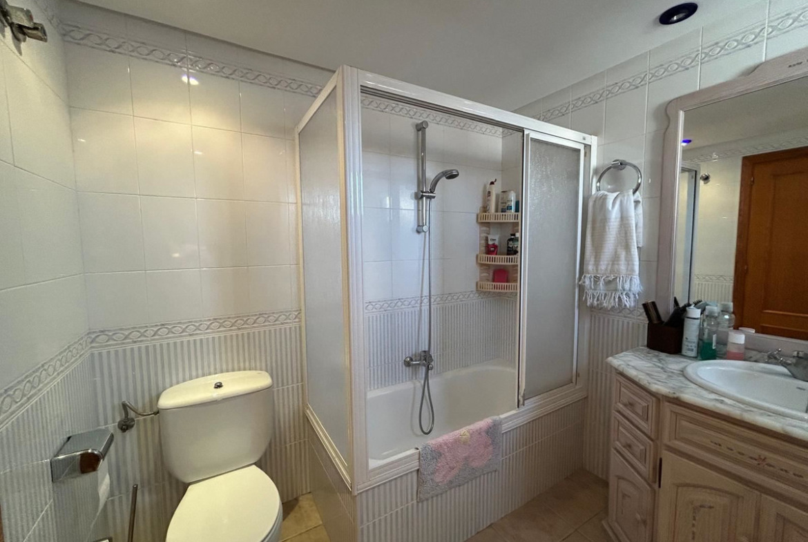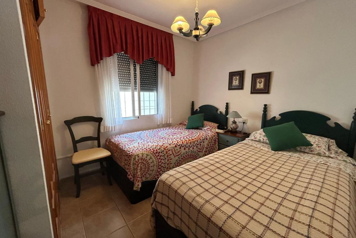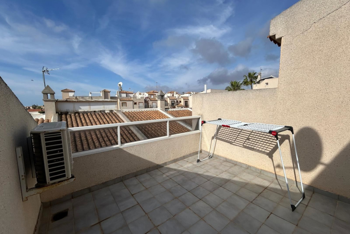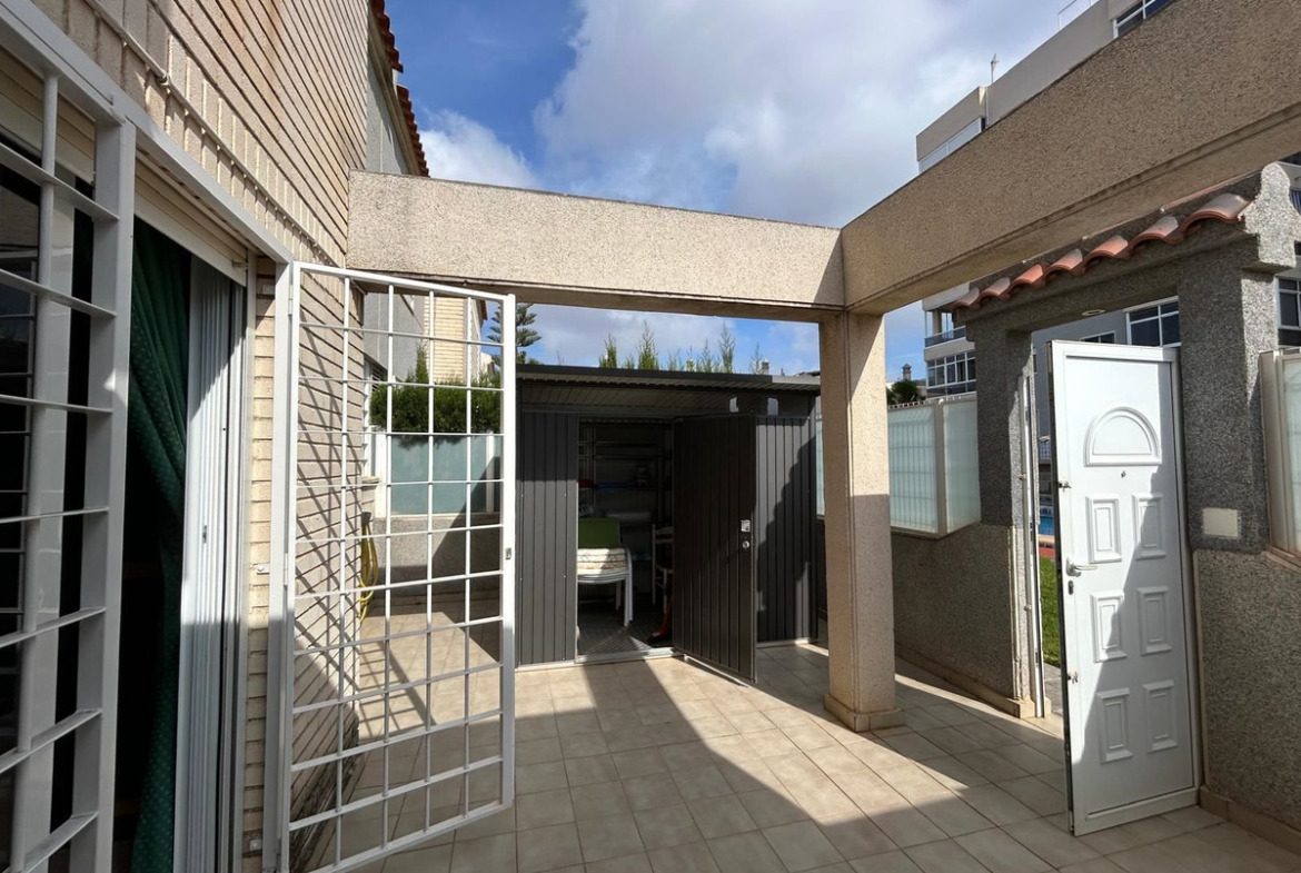 The townhouse is equipped with air conditioning for a comfortable indoor climate all year round, and a practical storage room provides extra storage to keep the home well organized. The well-kept area also offers a beautiful communal garden and a large swimming pool – a lovely gathering place for both relaxation and socializing with neighbors.