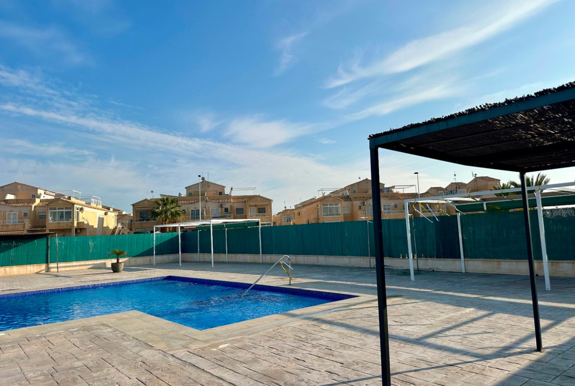 Charming semi-detached bungalow for sale in the popular La Siesta neighborhood of Torrevieja. This property features two bedrooms, one modern bathroom, a cozy living room, and a recently renovated open-plan kitchen. The bathroom has also been recently renovated. The bungalow also boasts a spacious, beautifully landscaped garden with recently replaced awnings. Situated in a desirable area, close to all amenities, it's perfect as a holiday home, investment, or permanent residence.