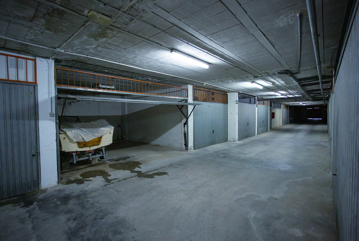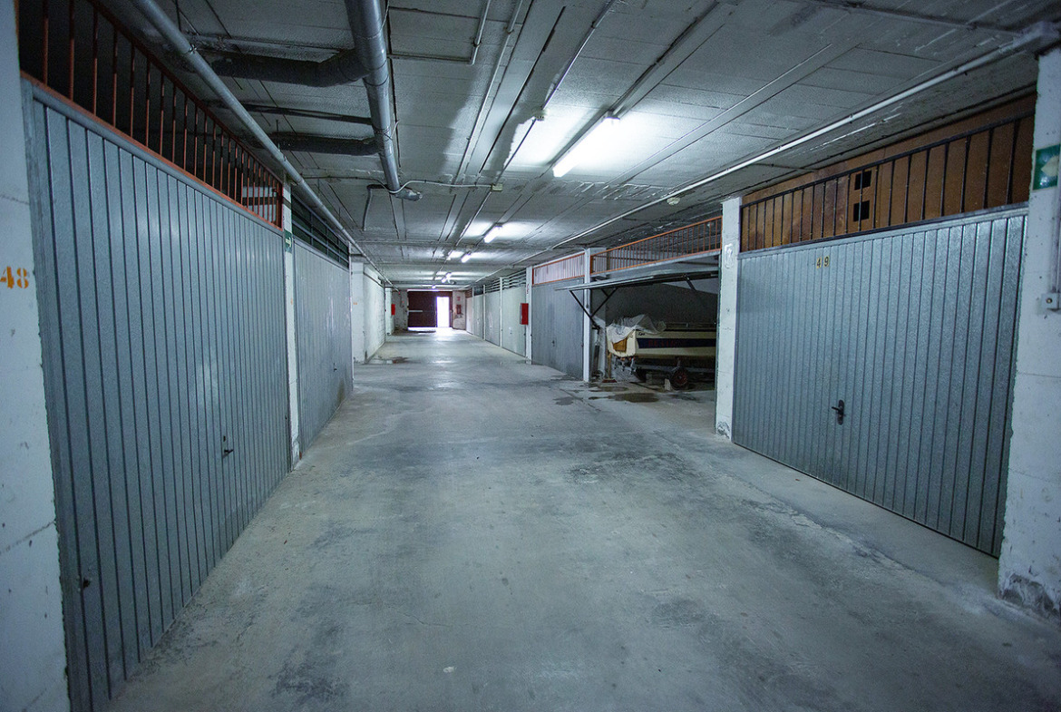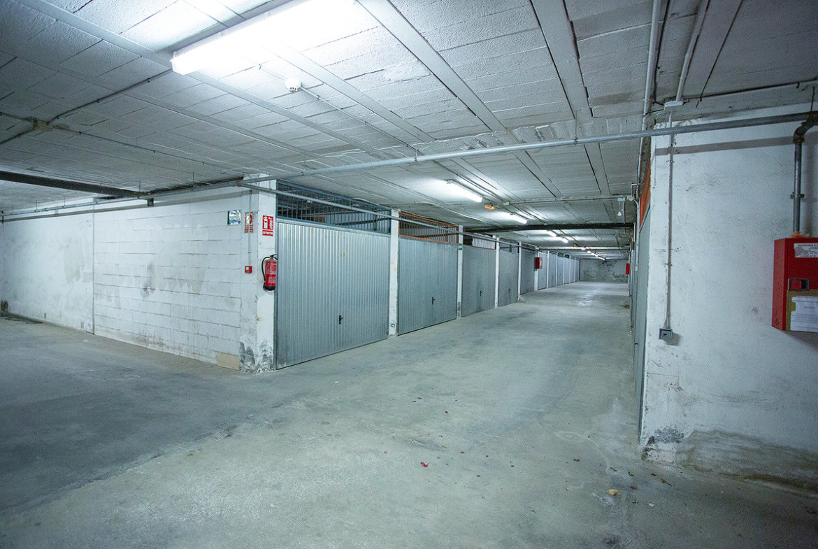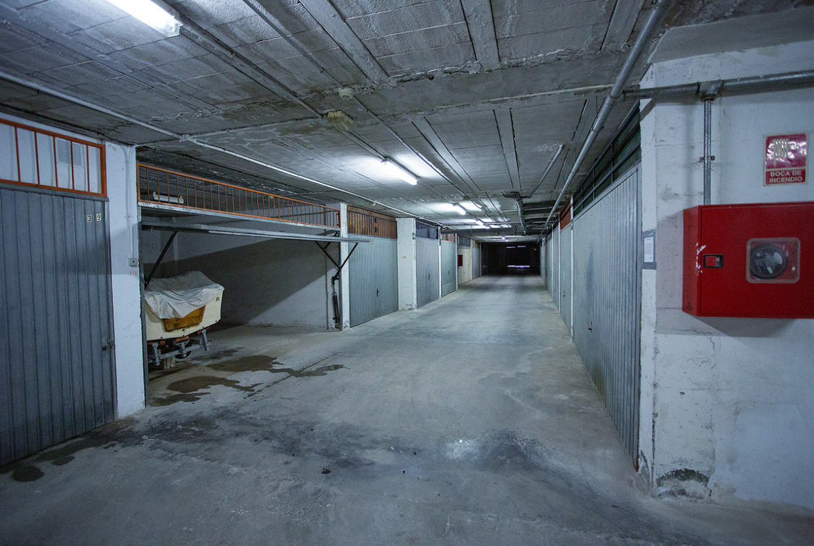 A garage for sale in Torrevieja, in the Los Locos beach area, Frutales. It is a large closed garage space located on the semi-basement floor in a private residence and has a total constructed area of 30 m2. The garage space can be used as a storage room or as a parking space for two cars. It has a good location only 5 minutes walk to the beach of los Locos