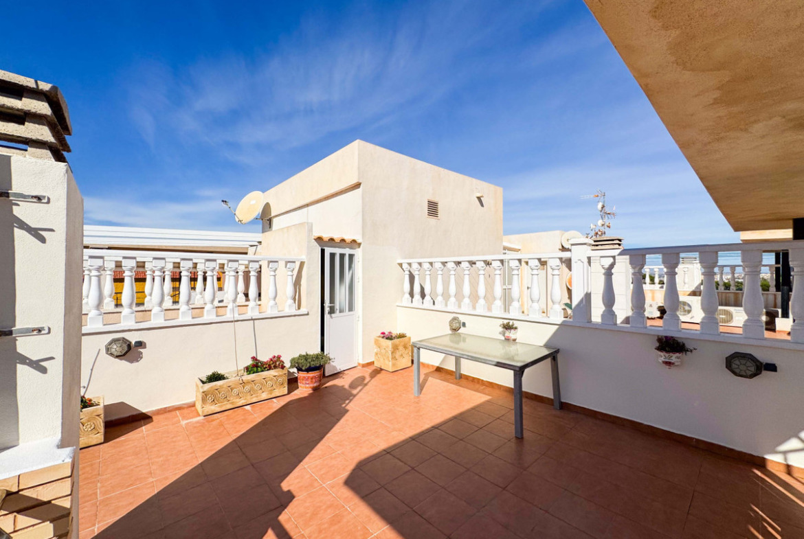 This penthouse in Punta Prima, Torrevieja, featuring a private solarium and sea views, offers a unique opportunity for those seeking comfort and exclusivity. Located on the fifth floor of a building constructed in 2008, with elevator access and private parking in the same building, it combines convenience with a privileged location. The property stands out for its private solarium, perfect for enjoying the sun and panoramic views of the Mediterranean Sea, ideal for relaxation or social gatherings. Additionally, the private parking adds significant value for vehicle comfort and security. The layout includes elevator access, facilitating mobility. Punta Prima is renowned for its tranquility, close proximity to the beach, and nearby amenities such as shops, restaurants, and public transport. This property is attractive for permanent residence or investment, offering the option of seasonal rental. Contact us to arrange a physical visit or request a virtual tour or detailed floor plan. Take advantage of the opportunity to live or invest in a penthouse with excellent features and a privileged location.
