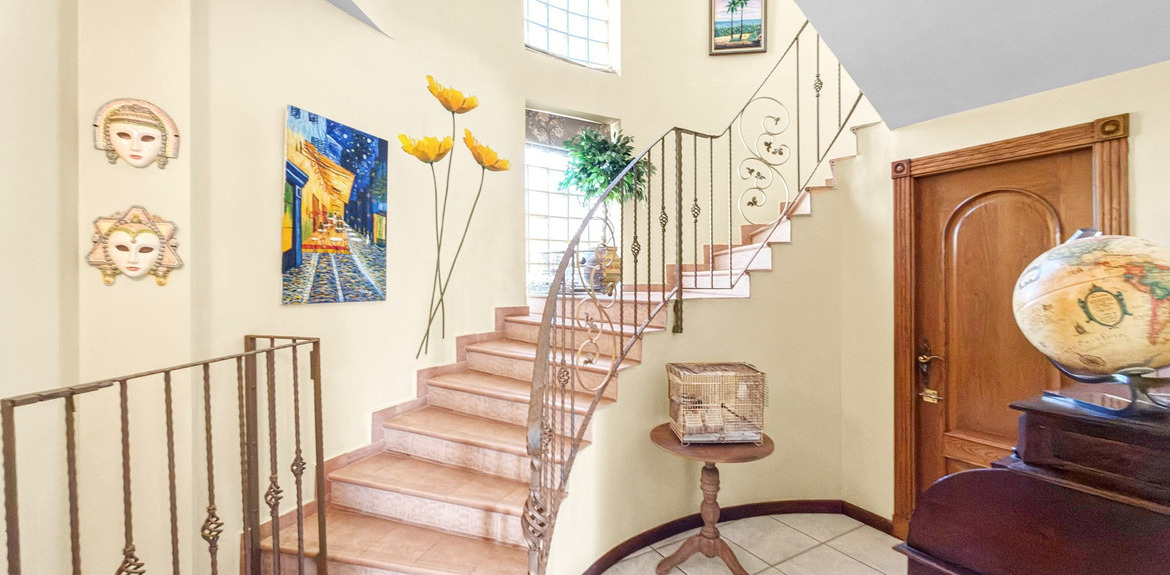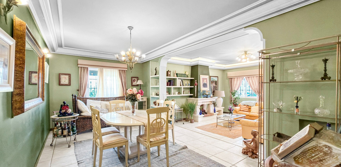 The villa features six spacious double bedrooms and five fully equipped bathrooms, making it ideal for large families or those who enjoy hosting. Each level offers bright and elegant living and dining areas, creating multiple spaces to relax and entertain.
