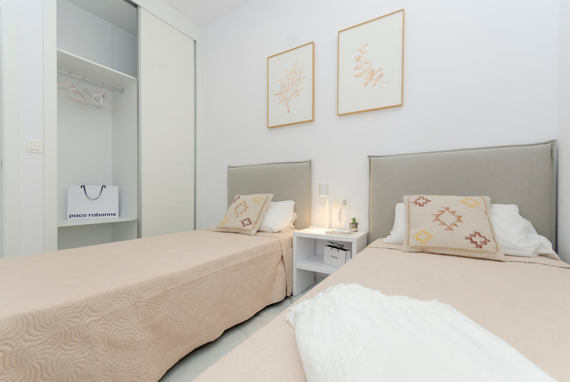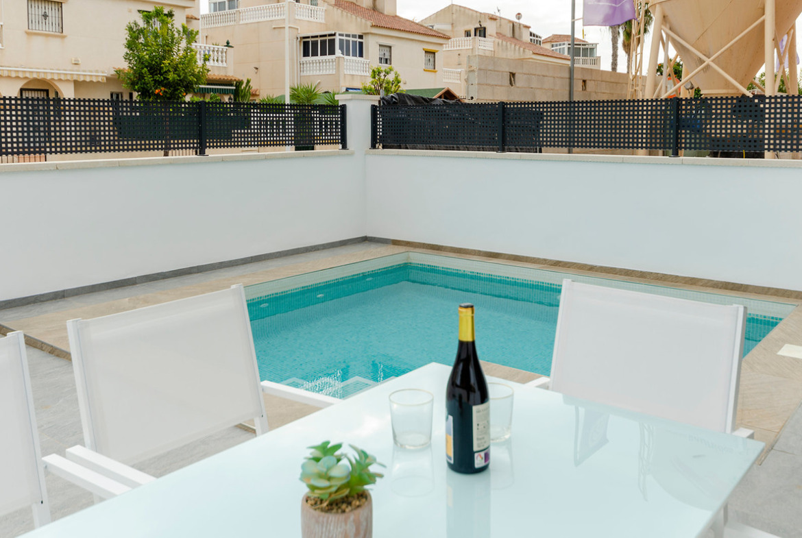 Overlooking the unique and charming Laguna Rosa, and surrounded by all the services you may need: supermarkets, hypermarkets, Habaneras shopping center, school, high school… Very close to the international beaches of Torrevieja, Guardamar and Orihuela Costa. At 40 minutes from the International Airport of Alicante.