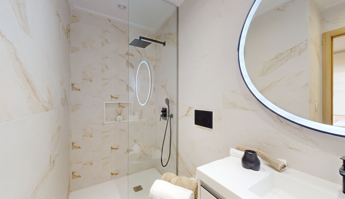 This new residential complex will have large common areas where guests can relax in the large summer pool or in the heated spa. Children will enjoy the “Vista Azul Park” and the more athletic will have a gymnastics area with bio-health machines and a “Putting Green Golf” to practice their swing, all in a gated complex with large, well-kept green areas for everyone to enjoy.