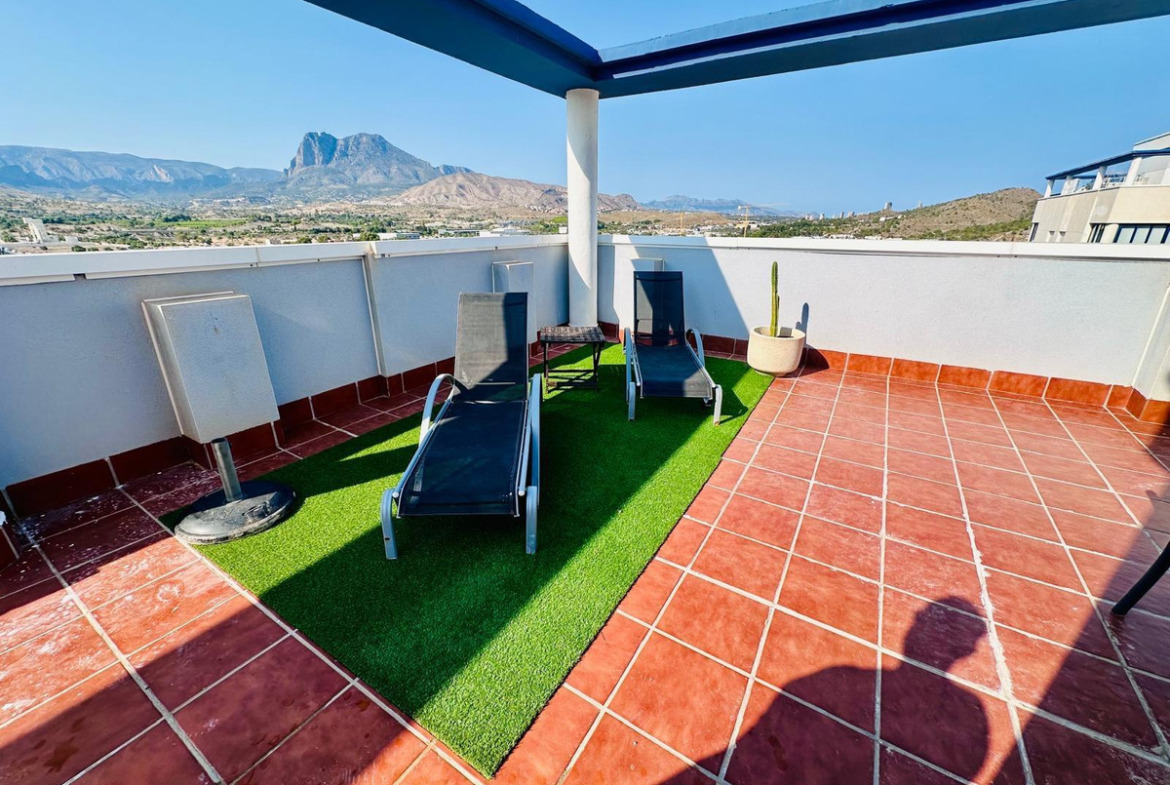 Discover this stunning penthouse located in the coveted area of Playas del Torres, in Villajoyosa. With a generous built area of 173 m² and a usable area of 165 m², this property presents a unique opportunity to enjoy the Mediterranean lifestyle. The home features two spacious double bedrooms and two full bathrooms, providing comfortable space for families or those seeking comfort. Its south-facing orientation ensures brightness throughout the day and allows you to fully enjoy its private terrace, ideal for relaxing while taking in the views just 50 meters from the sea.The urbanization offers exceptional services such as a community pool perfect for hot days, a nearby playground where the little ones can play safely, and garden areas surrounded by trees that bring freshness to the urban environment. Additionally, it includes its own parking space and storage room.With easy access to nearby bus lines facilitating travel to other important areas and even mountain routes perfect for hiking or simply enjoying natural landscapes; don’t miss the opportunity to acquire this real estate gem.