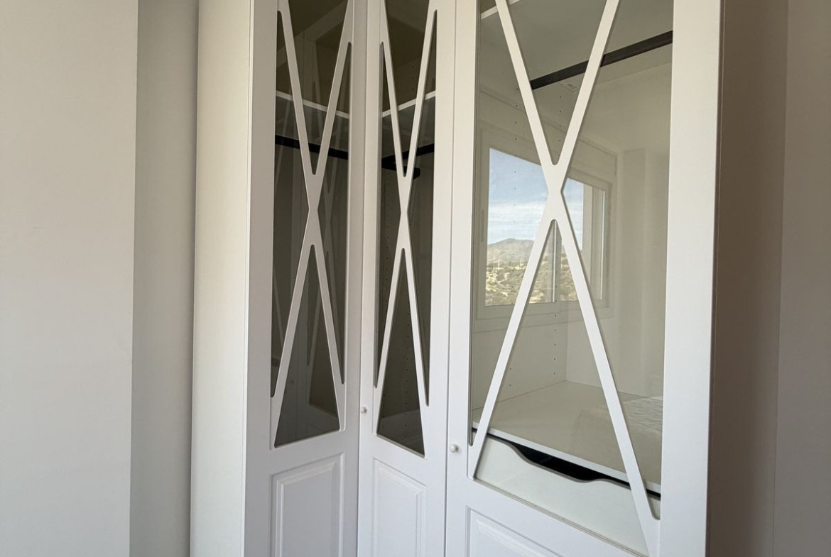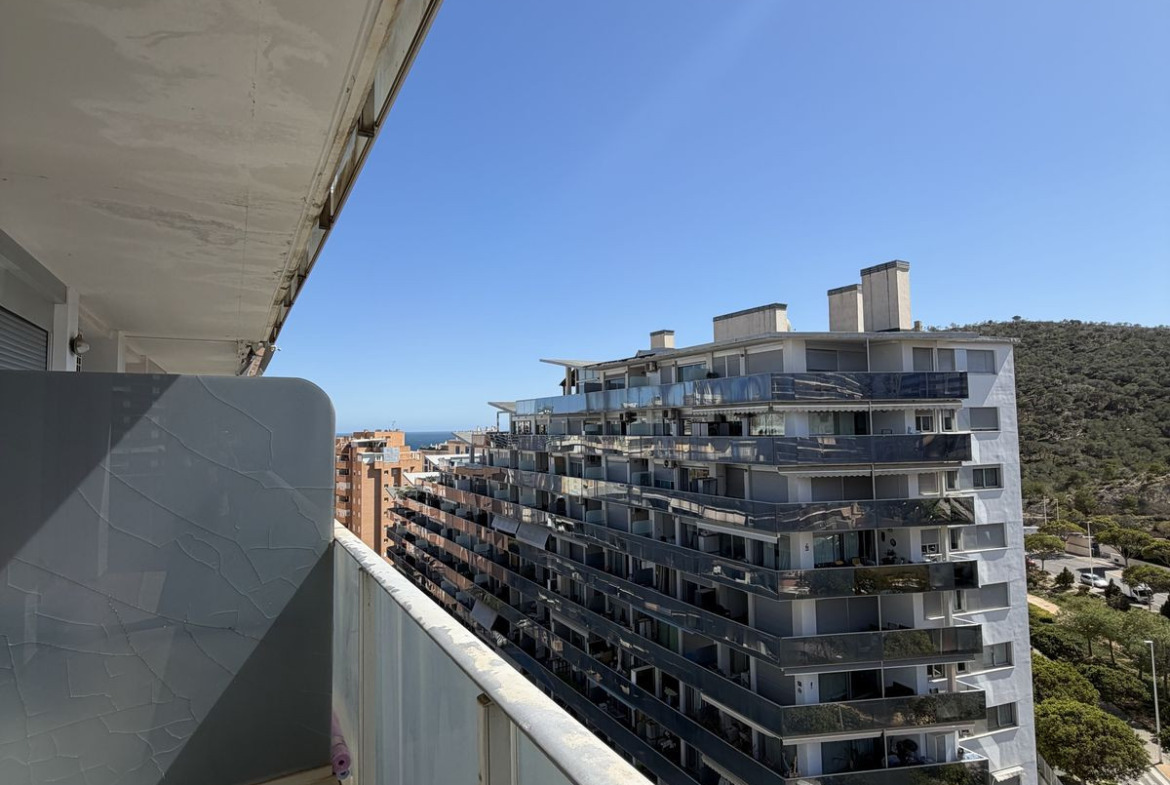 This is practically a corner penthouse, located on the 10th floor out of 11, offering completely open views and sun all day long. The property features wraparound balconies and a spacious terrace, creating a bright and airy atmosphere throughout.