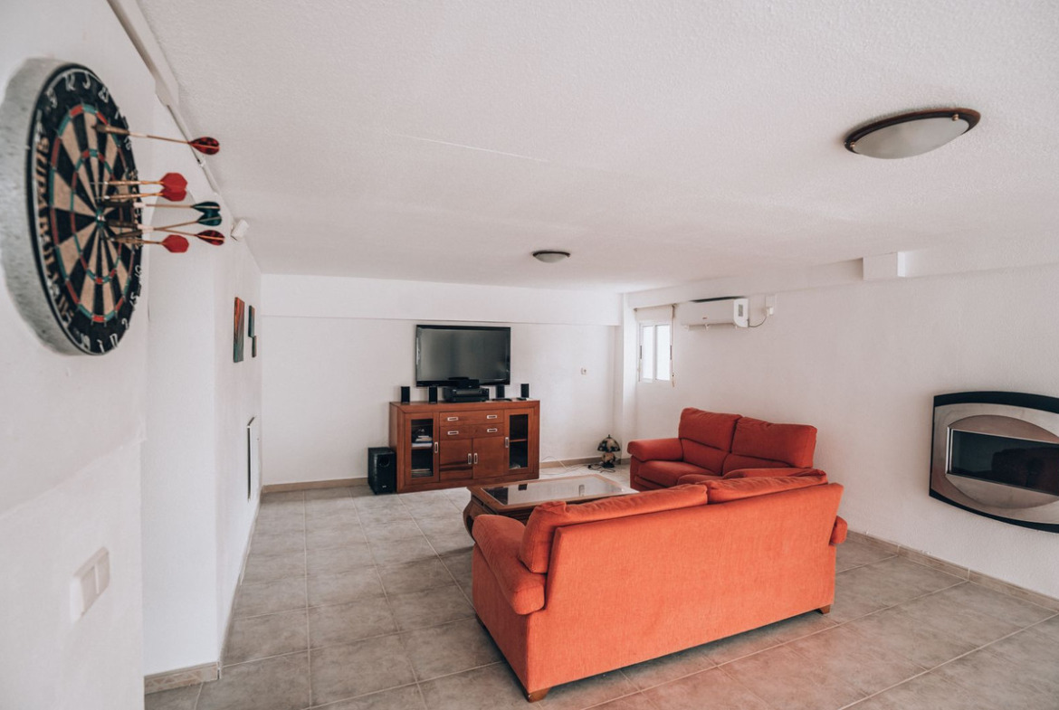 The house is bright and spacious, with three bedrooms and two bathrooms on the first floor. Additionally, on the lower level, there is a large gaming room/living room, an extra bedroom, and a bathroom. This configuration is ideal for large families or groups of friends seeking a comfortable place to relax.