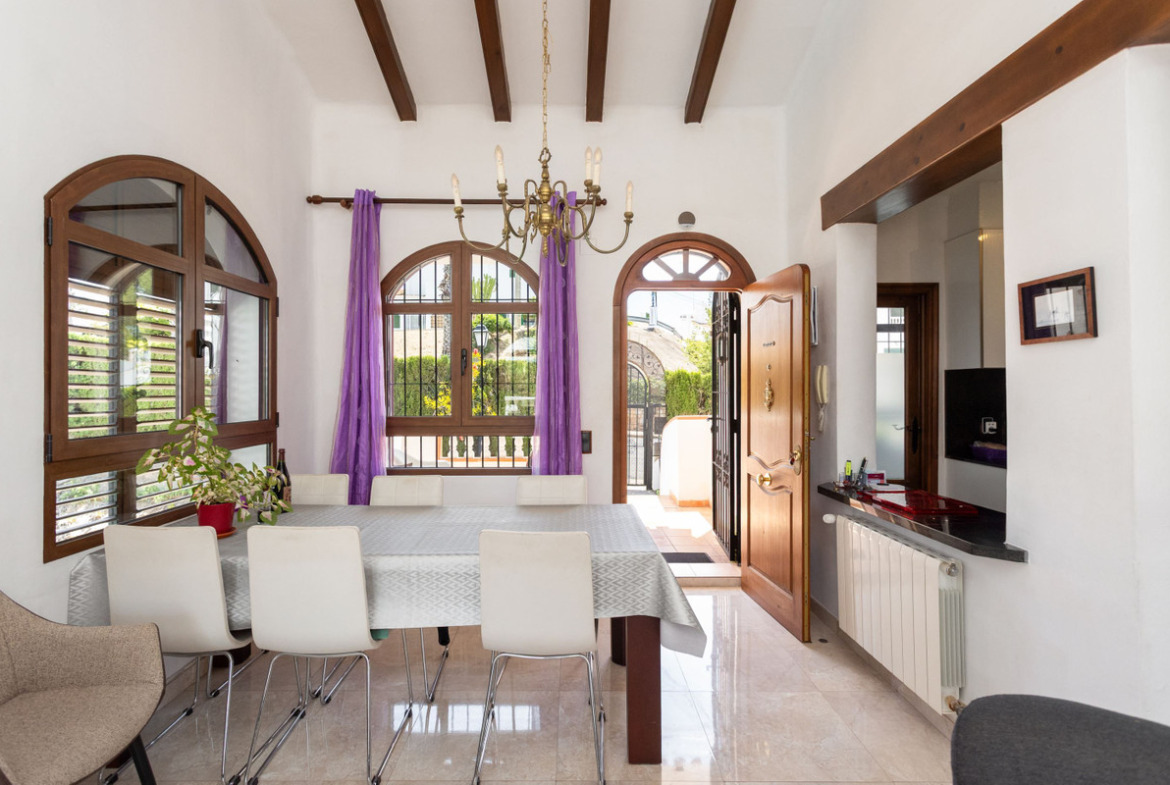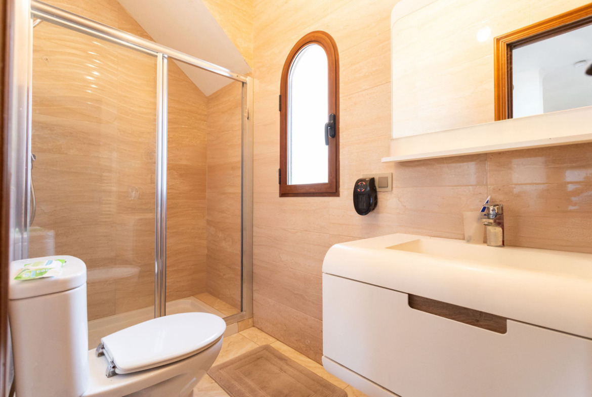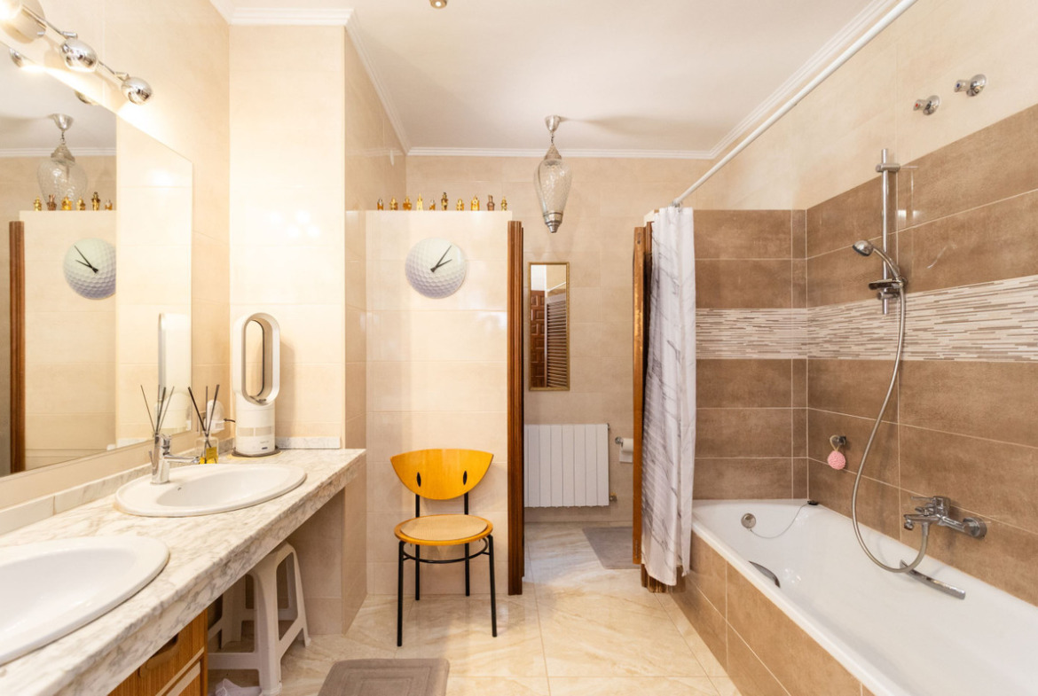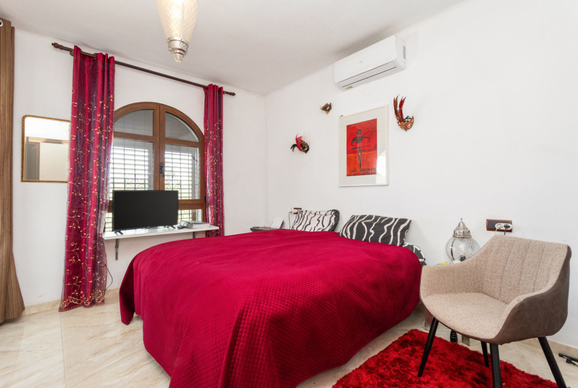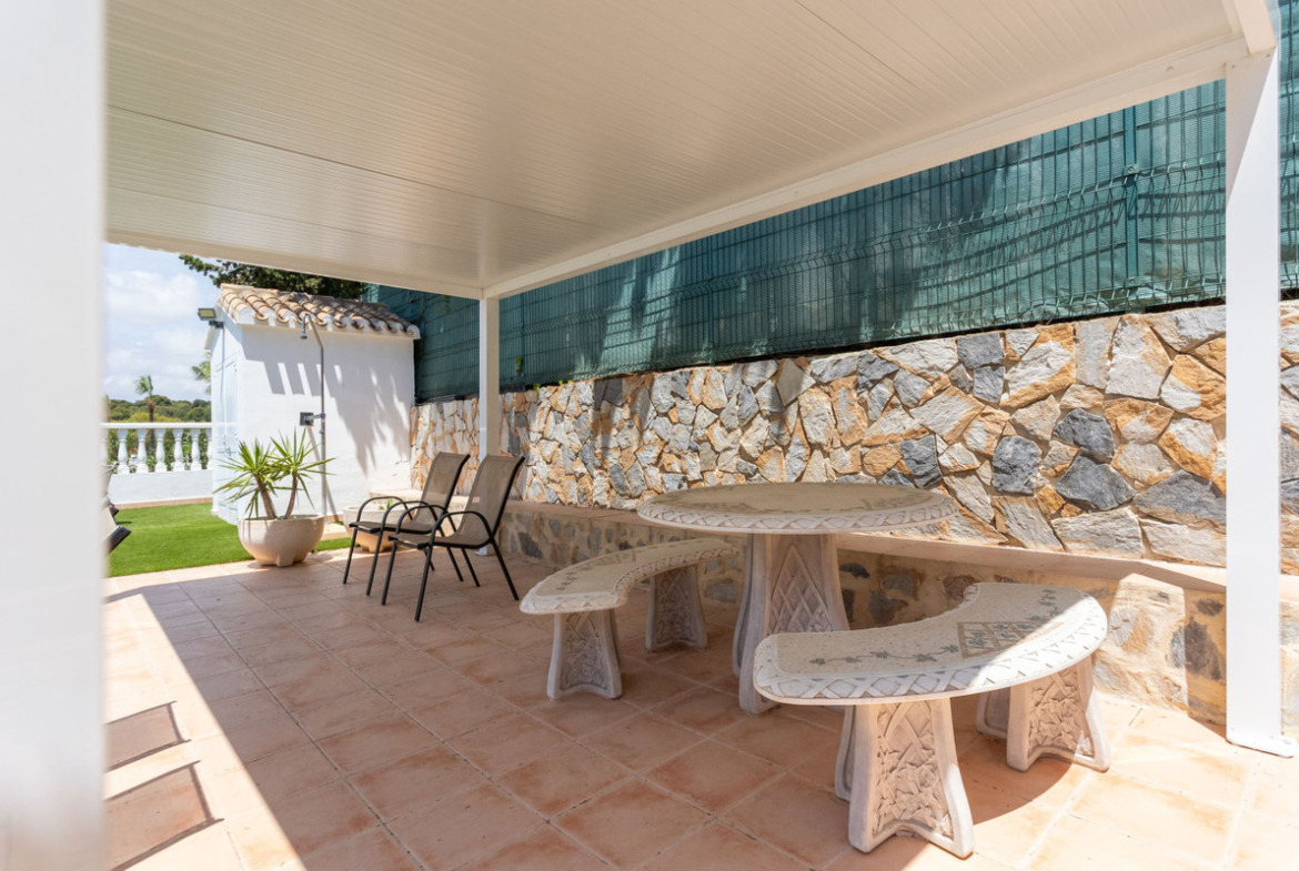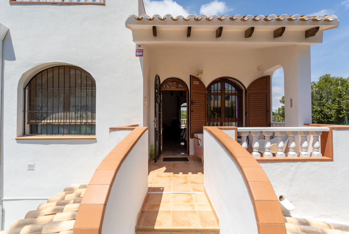 The villa is spread over two floors and has a total of four spacious bedrooms and two bathrooms, making it ideal for large families, multi-generational living or those simply looking for plenty of space to enjoy life in the sun. With a built area of 156 square meters on a generous plot of 900 square meters, there is both space and privacy here – an oasis in the middle of the green.