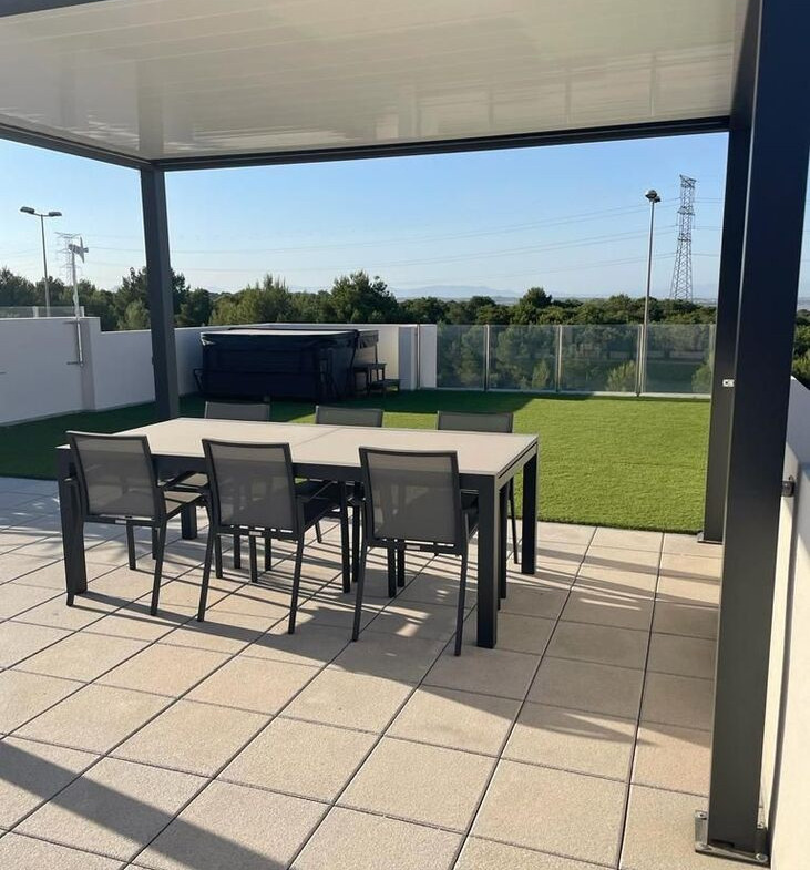 <p>Outside, the property boasts a <strong>beautiful private swimming pool</strong> and an <strong>impressive 104 m² private solarium</strong>, a true outdoor oasis complete with a <strong>fully equipped outdoor kitchen</strong>, <strong>awning</strong>, <strong>spa</strong>, and <strong>breathtaking views over the Torrevieja salt lakes</strong>.</p>