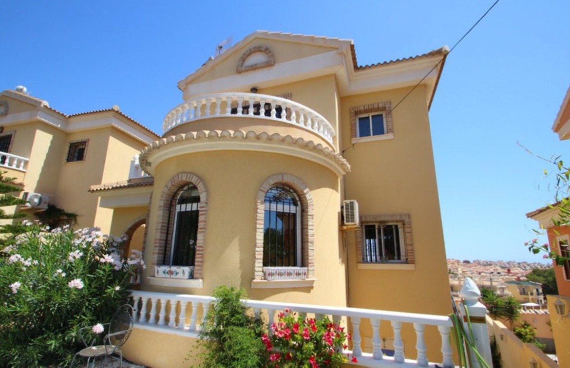 This beautiful family home offers in the main living area three double bedrooms, family bathroom, toilet, cloakroom, spacious lounge/dining room, fully fitted kitchen with breakfast bar and storage area. The villa also boasts a private under build apartment with direct access to the pool area and offers double bedroom, spectacular bathroom, sleek and modern open plan kitchen with breakfast bar and spacious lounge/dining area. Outside space boasts numerous terraces, wrap around balcony, established garden and private swimming pool (8×3). To be sold furnished including white goods, security shutters, grilles, air conditioning, satellite TV, gas fire and much more.