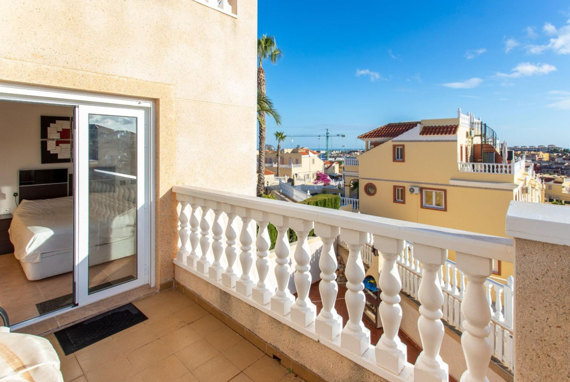 Approx. 4.8 km from the beach (around 15 minutes by car), very close to Villamartin Golf, and about 45 minutes’ drive from the airport. No tourist license in place, and no legal notes stated. Suitable for year-round living or as a low-maintenance holiday base.