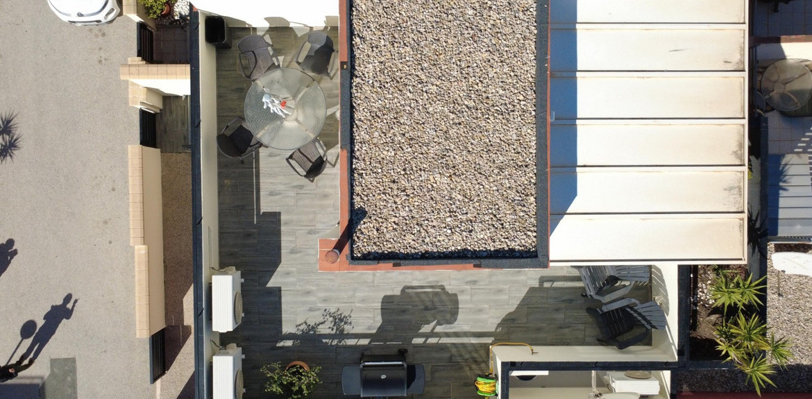 Upstairs features three well-proportioned bedrooms and an additional bathroom. From here, you have access to a private balcony, while the highlight of the home is the impressive roof terrace (solarium) offering spectacular sea views — the perfect place to unwind, sunbathe, or entertain guests.