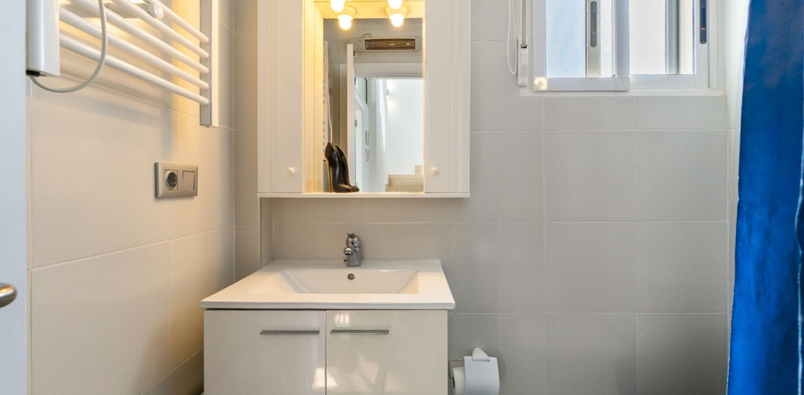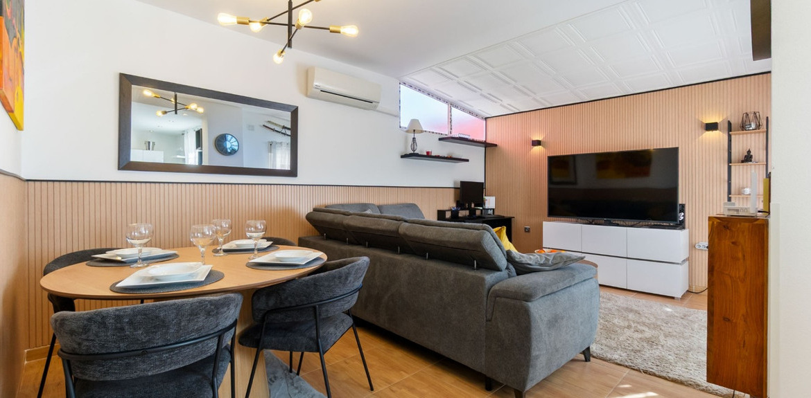 On the ground floor, you’ll find a bright and welcoming living area with dining space, a fully equipped kitchen, one bathroom, and direct access to a spacious private terrace — perfect for outdoor dining, relaxing, or enjoying the Mediterranean climate all year round.