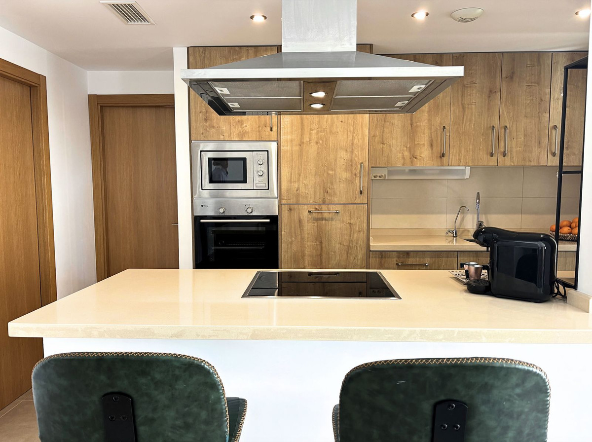 The open-plan layout is filled with natural light and features a fully equipped kitchen, built-in wardrobes, and underfloor heating in one bathroom. Sold fully furnished and ready to move in.