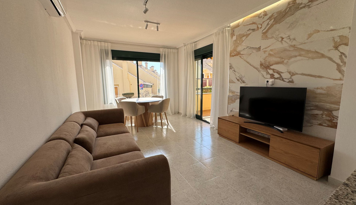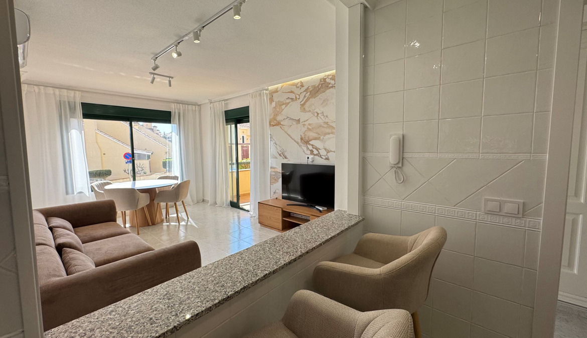 Exclusive and completely renovated apartment in a golf-friendly location In Lomas de Campoamor, one of the area's most sought-after residential locations, this elegantly renovated and ready-to-move-in apartment is presented – a home where quality, style and comfort meet in perfect harmony. Here you live in a quiet and green area, with the golf courses within easy walking distance and with sun from morning to evening thanks to the sought-after southern exposure.