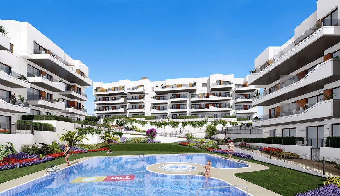 Modern luxury 2 bedroom apartment (on the second floor) in Villamartin, Alicante with beautiful communal gardens and swimming pools.