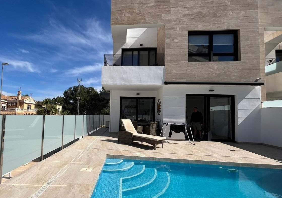 Modern villa with private pool and an attractive corner location A warm welcome to this modern and stylish villa located in the popular residential area of Las Filipinas in Villamartin. This well-planned villa has an attractive corner location and on the plot there is a nice private pool. The villa consists of three bedrooms, two bathrooms and an open-plan living room and kitchen.