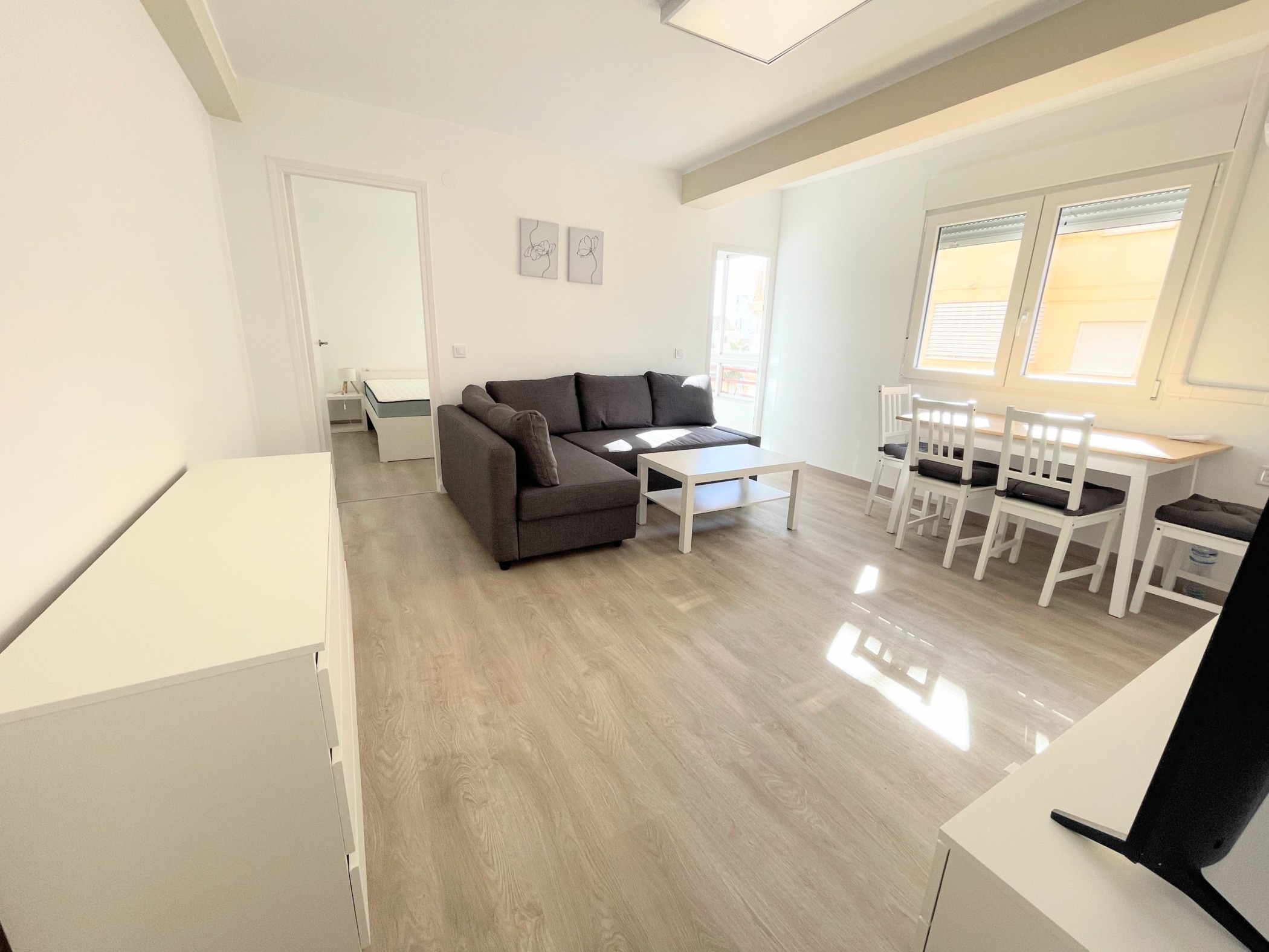 El Campello központjában, mindössze 50 méterre a gyönyörű homokos strandtól, hosszú távra (11 hónapra) kiadó egy teljesen felújított, modern, teljeskörűen bútorozott és gépesített apartman.