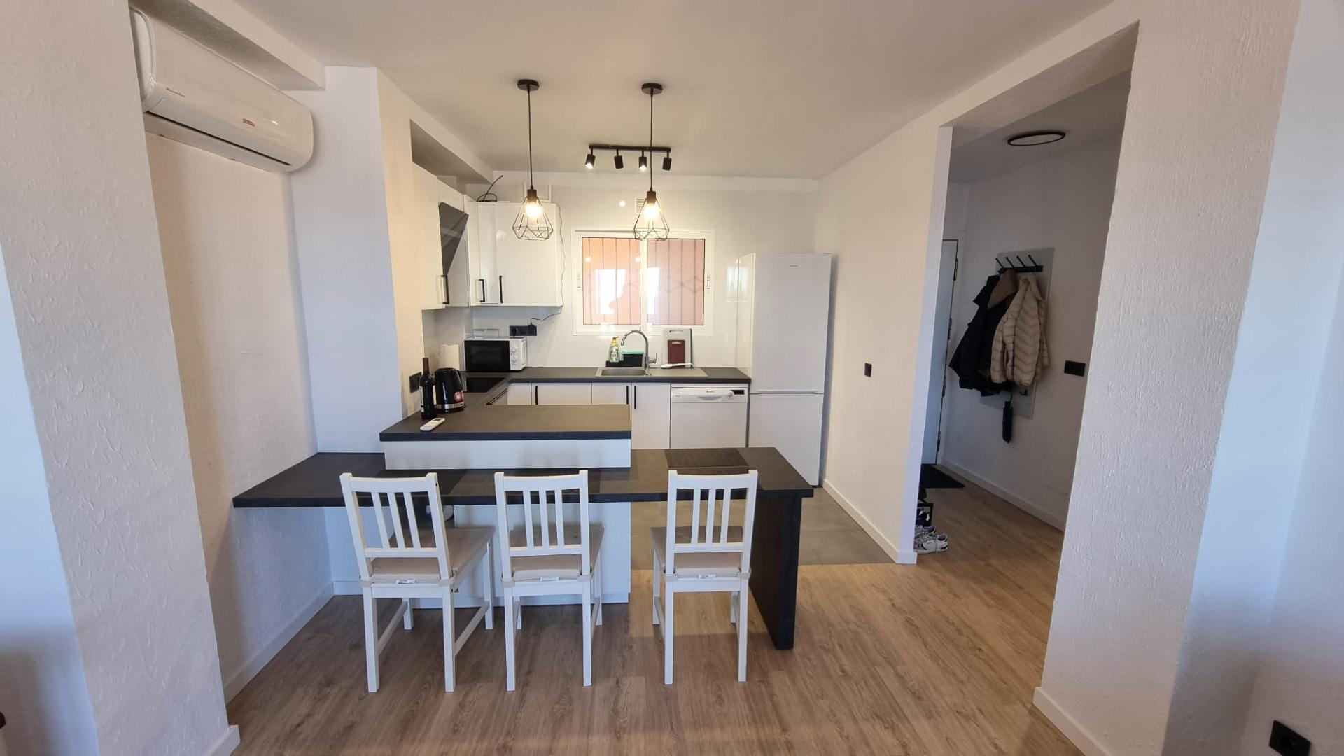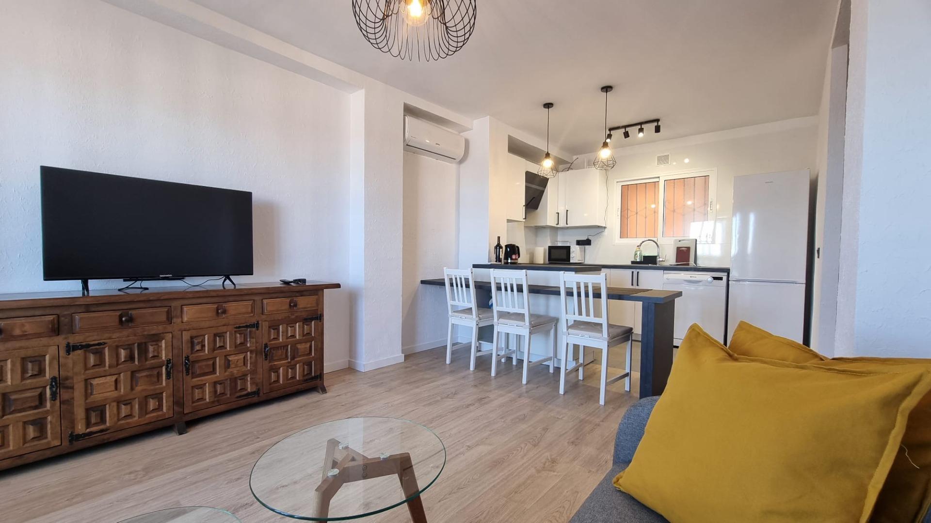 Frissen felújított, hangulatosan berendezett teljesen felszerelt apartman Torrevieja csendes, kertvárosi részén. Az apartman kényelmes méretű, tengeri panorámás terasszal rendelkezik. Az aprtmanban található egy tágas amerikai konyhás nappali, egy franciaágyas hálószoba valamint eg fürdőszoba. A terasz a nappaliból és a hálószobából egyaránt megközelíthető. A lakás klimatizált.